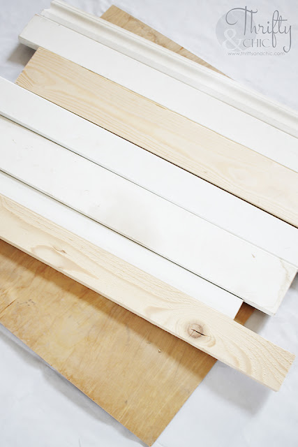 So, here are my scrap would pieces. I used quite a mixture or wood or mdf in all different sizes. The backing that I used was also a scrap piece from one of my furniture builds, it's 1/16" piece of plywood. If you don't have this available, you can buy it at a building supply store for about $5 for a 4'x4' piece.